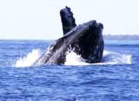 I camped at Olawalu recently, and sat by the sea one afternoon, when suddenly a shark fin emerged in the shallows before me. It was small – a four-foot reef shark. I watched the dorsal and tail fins slice through the water for forty minutes, ten feet offshore, while it hunted for dinner. I am not afraid of a reef shark. I'm afraid of the Tiger shark, the Great White, the Galapagos shark. Those big possibly-human-crunching ones worry me. But not enough to keep me and my friend out of the water the next morning when I noticed whales outside the reef about 1/4 mile in front of us. They were moving slowly enough that I thought we might have a chance to meet them. We donned our snorkel gear and took off across the shallow reef to the outer edge where the water color changed to a deeper hue, and the coral fell away.